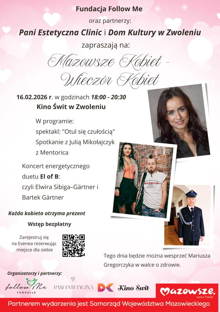 Nasze wydarzenie uświetnili Andrzej Skorek – Starosta Zwoleński oraz Arkadiusz Sulima Burmistrz Zwolenia, którzy wraz z prezes fundacji follow Me – Iwona Paszkiewicz i dyrektorką Dom Kultury w Zwoleniu – Anna Wieczerzyńska przywitali uczestniczki.